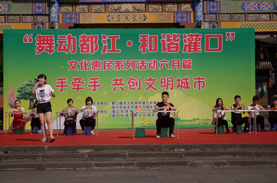 5月30日上午,建筑与城乡规划学院与都江堰市灌口街道办共同主办的文化惠民“舞动都江·和谐灌口”文艺汇演在玉垒山广场隆重举行。