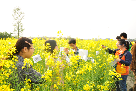 决赛在惠和村农场举行,内容为杂交油菜品种的田间纯度检验。选手们需要观察并描述该品种标准样品的植株主要形态特征,对一定数量和范围的油菜植株进行比较鉴别,分类记载本品种、异品种、异作物、母本植株数,计算品种纯度,并说明该批种子是否符合国家规定的种子质量标准。评委老师根据选手对实验的熟悉程度、鉴定结果的准确性及对标准样品的描述准确度三项进行评分。最终颜佳鹏同学获得大赛一等奖,邓肃霜、路芳芳获得二等奖,另外有4位同学获比赛三等奖。