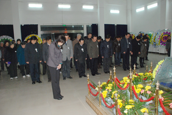 最后,参加仪式的全体同志缓步上前,向龙家恕教授遗体作最后告别。