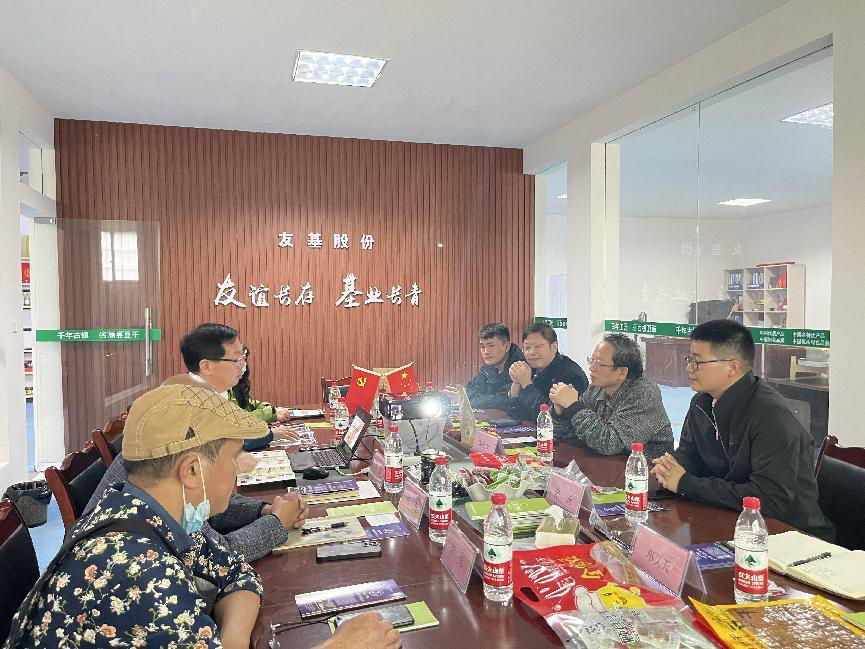 食品学院教师结合企业与市场需求,针对岳池特色农副产品豆干、豆豉等技术要求、技术难点和关键问题进行了深入探讨,并就未来发展进行规划,以期提升岳池特色农副产品质量,提升企业人才素质,科技助力岳池县乡村振兴。