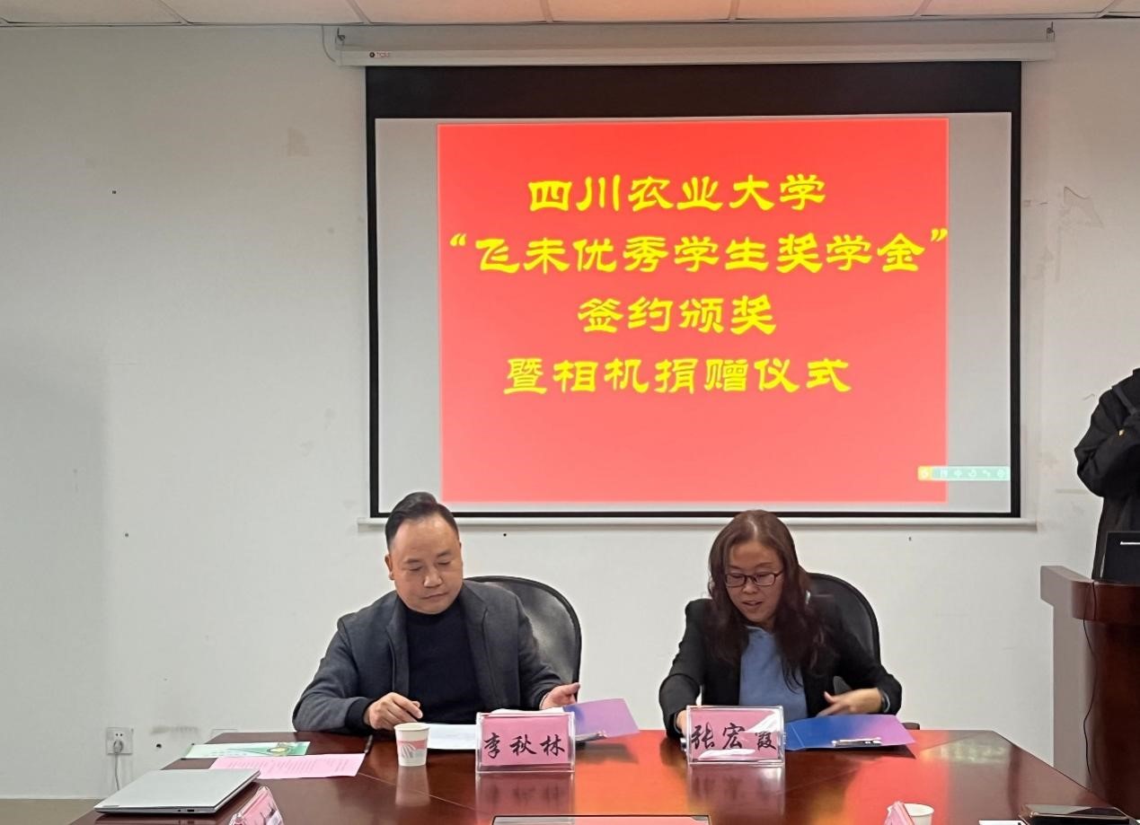 仪式上,校企双方介绍了各自发展情况,并都表达了进一步开展深度合作的期待。张宏霞与李秋林就“飞未优秀学生奖学金”设立进行签约,并共同为本年度获奖学生颁奖。企业还向学院赠送两台相机,寓意双方合作“照”向未来。