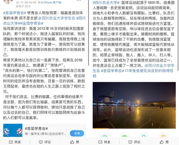 图为同学们对于学青会的心得感悟及运动打卡