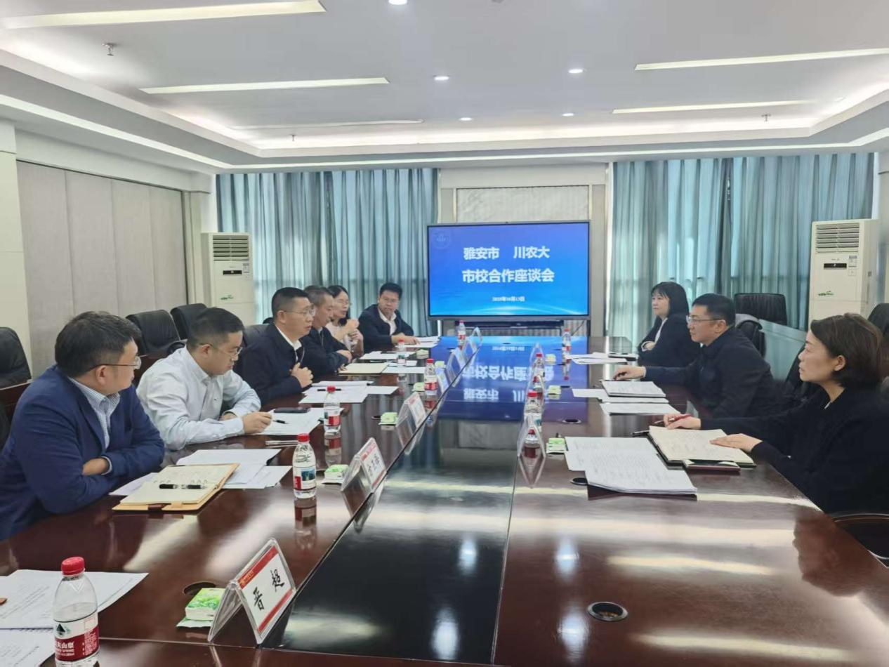 10月13日下午,雅安市与我校合作座谈会在成都校区举行。雅安市委常委、组织部部长张大奇,学校党委书记刘登才,食品学院、机电学院、信教中心等单位负责人和专家代表参会。