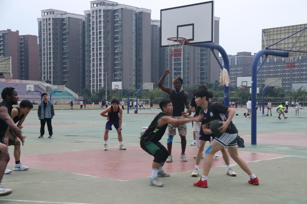 赛场上,中外学子并肩作战,从最初的陌生、试探,到一次次攻防配合中形成的击掌与呐喊,每一次精妙传球、每一次得分后的击掌,都在无声地传递着友谊与默契。一场比赛下来,交换的不仅是比分,更是笑容与友谊。正如一名参赛的中国学生所言:“一个挡拆配合、一次及时的回防,就是最好的沟通。”
