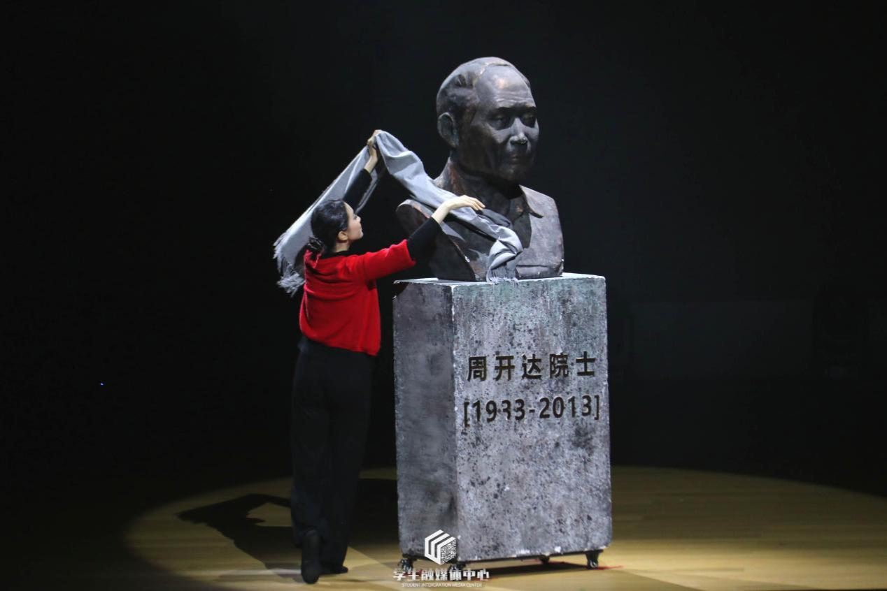 第二篇章“稼穑华章”以百年百杰科学家的奋斗史为主线,诠释川农大精神,引领师生勇担“兴中华之农事”的时代使命。群舞《迁雅之初》再现迁雅初期广大师生在困顿中破土、在艰难中生根的壮阔图景;独舞《守望》演绎了我校周开达院士的夫人李仁恕数十年如一日在雕塑前守望的故事,表达“老来多健忘,唯不忘相思”的执手深情;情景诗朗诵《川农大的脊梁》表达我校杨开渠、杨允奎、杨凤、颜济、周开达、荣廷昭六位“四川百年百杰科学家”的殷切嘱托,激励川农学子坚定兴农报国初心,为农业强国建设贡献川农青年力量。表演唱《在希望的田野上》以昂扬歌声唱响青春誓言,展现川农学子把论文写在祖国大地上的坚定步伐。