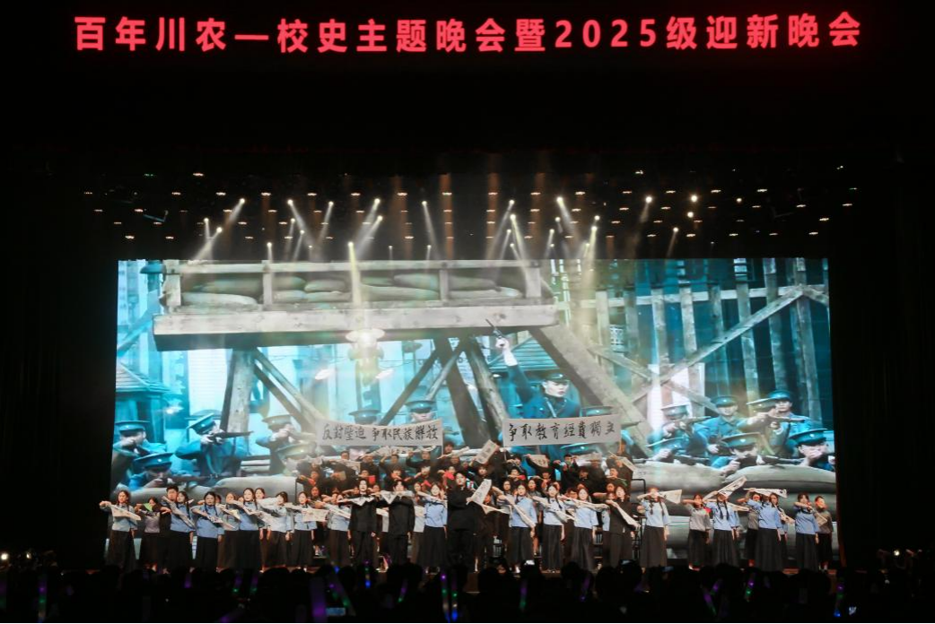 百年风华,奋斗逐光。9月28日至10月19日,“百年川农”校史主题晚会暨2025级迎新晚会在三校区精彩上演。学校党委书记刘登才、党委副书记张强、副校长李德海,学校职能部门、都江堰校区综合管理办公室以及各院所党政领导、2025级全体本科生、研究生,四川省2025年乡村产业振兴带头人培育“头雁”项目第二期培训学员共1.1万人同上一堂沉浸式校史舞台思政课。
