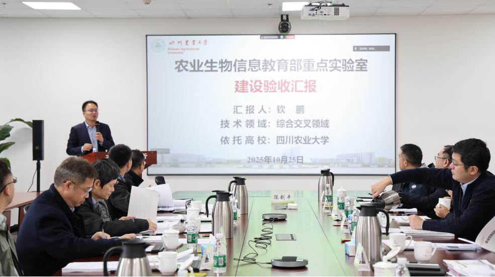 10月25日,“农业生物信息教育部重点实验室”建设项目验收会在成都校区科技园C303会议室召开。教育部项目专家组,四川省教育厅科技研究生处副处长罗涛,我校副校长王际睿,科技管理处处长田孟良、副处长张沙秋及重点实验室相关人员参加会议,会议由田孟良主持。