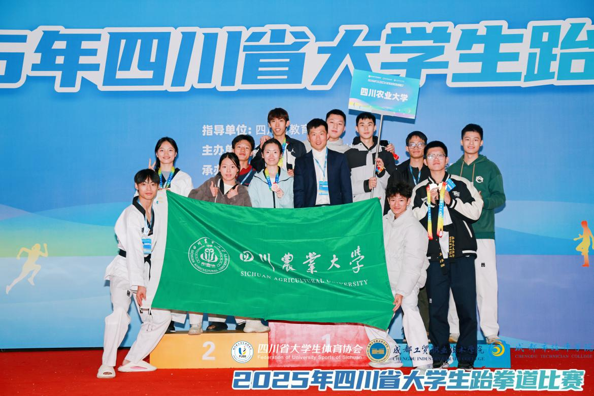10月31日至11月2日,由四川省教育厅指导,四川省大学生体育协会主办的2025年四川省大学生跆拳道比赛在成都工贸职业技术学院体育馆顺利召开。本次比赛吸引了省内37所高校的400余名运动员参赛,我校跆拳道代表队在袁晓辉老师的指导下,队员们全程全力以赴、释放潜能,经过两天紧张激烈的赛事角逐,最终以3金5铜的优异成绩圆满收官。