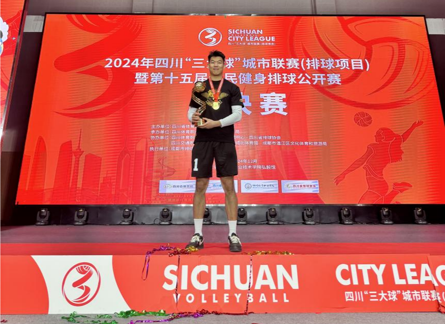 在比赛中,迟鸿宣全情投入、发挥稳定,他代表学校参赛7场,凭借精准的扣杀、灵活的防守、关键球的把控,不仅让他成为赛场上的焦点,更以出色表现赢得组委会与对手的认可,累计斩获 150分,场均得分达21.4分,最终从高校专业组32所高校的500余名运动员中脱颖而出。同时在该赛事中,川农男排力战群雄拿下第五名,刷新了我校在“贡嘎杯”的历史最佳战绩。