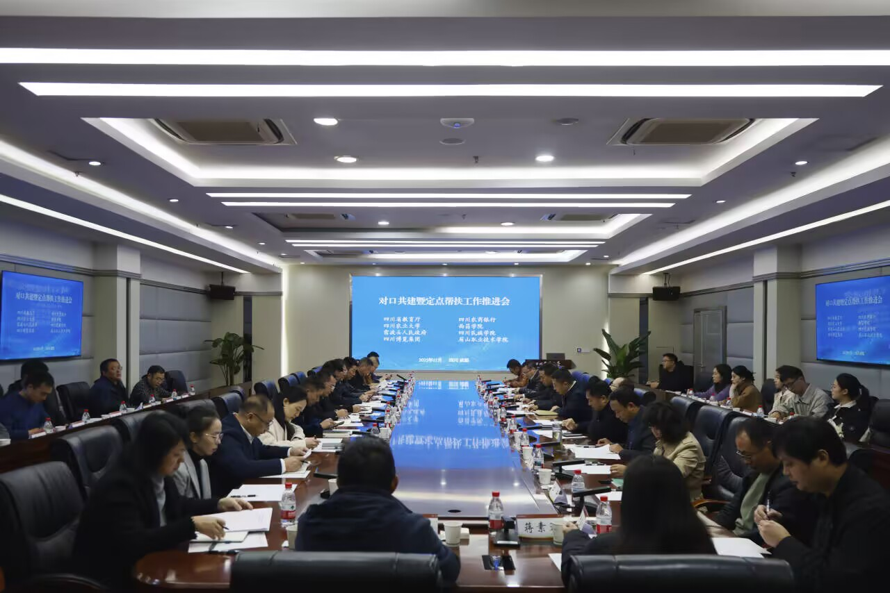 11月11日,我校对口共建暨定点帮扶工作推进会在成都校区召开。来自雷波县人民政府、西昌学院、四川民族学院、眉山职业技术学院、四川博览集团、四川农商银行等单位代表与我校相关职能部门、教学科研单位负责人和帮扶专家代表参会,总结交流对口共建与定点帮扶成效,共商校地企协同发展、助力乡村振兴新路径。雷波县副县长姜涛,西昌学院副校长曲木伍各,四川民族学院党委副书记詹先友、眉山职业技术学院副校长丁盛、教育厅派驻雷波挂职干部何飞,我校党委书记刘登才、副校长王际睿等出席会议。