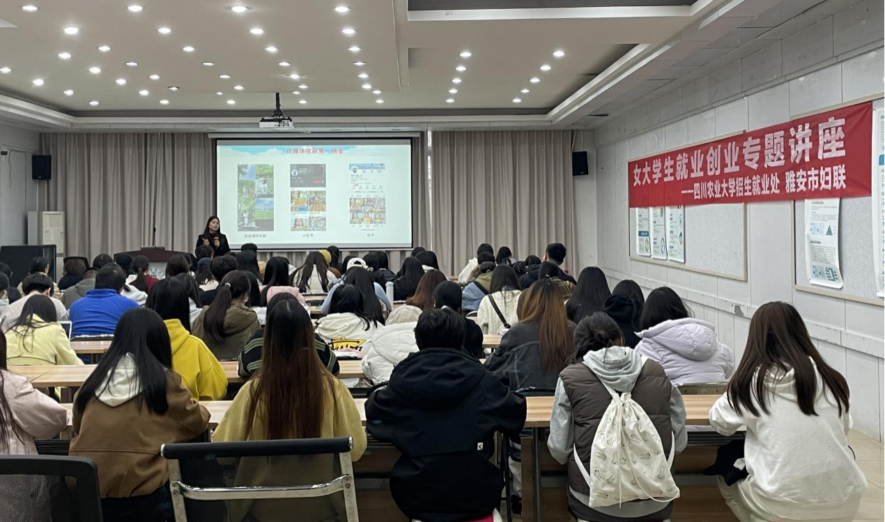 为帮助广大女大学生就业创业启迪思维、开拓视野,11月11日,招生就业处携手雅安市妇联在逸夫楼学生就业指导综合报告厅联合举办了女大学生就业创业专题讲座。活动特邀两位女企业家面向百余名同学讲述创业历程中的挑战与突破,解析行业机遇与挑战。