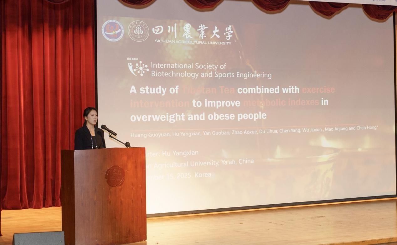 11月15日,2025国际生物技术与体育工程大会在韩国首尔召开。大会以“生物技术与体育健康创新”为主题,汇聚了全球相关领域的专家学者,共同探讨生物技术前沿在人体运动与健康促进中的应用。体育学院副教授(特聘)黄国园带领学校第27届研究生支教团成员、体育学院2021级社体专业本科生吴佳逊和2022级体教专业本科生胡阳鲜共同参会,并在会上发表了设立于我校体育学院的雅安市运动人体科学与国民体质促进重点实验室最新研究成果。