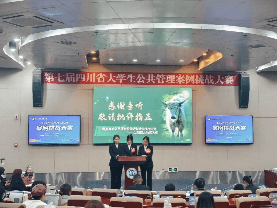 11月22日,第七届四川省大学生公共管理案例挑战大赛在西南财经大学举行。公共管理学院2023级土地资源管理专业本科生赵萌、唐诗韵、席融杰、胡庭萱、付欣然组成的参赛队伍,在教师孙锦杨指导下,经过激烈角逐,凭借作品《川藏高寒地区草原畜牧业转型升级路径研究——以川西北牧区为例》斩获四川省一等奖。