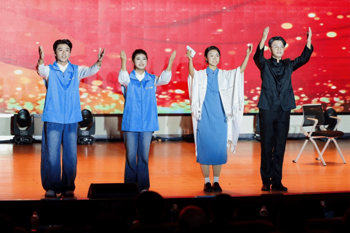 在宣讲展示环节,“艺韵传薪”宣讲团以原创诗歌《星核永耀 精神永续》惊艳亮相。他们通过诗朗诵形式,以细腻的角色演绎与饱满的情感表达,深情讲述了郭永怀等老一辈核科技工作者“干惊天动地事、做隐姓埋名人”的峥嵘岁月,将崇高的“两弹一星”精神化作可感知、可共鸣的舞台场景,让现场观众沉浸式感受“两弹一星”精神的时代传承与深刻内涵。