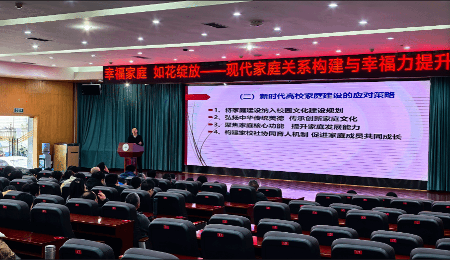 在长达两小时的分享中,蒋志强教授以其深厚的学术功底和丰富的实践经验,为在场教职工带来了一场思想与情感的盛宴。他首先从“幸福家庭的核心要素”切入,深刻剖析了现代家庭中爱与责任、尊重与理解、共同成长的重要性,明确了幸福家庭的内在要求。随后,他直面现代社会给家庭带来的诸多挑战,如快节奏生活下的沟通缺失、工作与家庭的平衡难题、代际教育观念冲突等,一一给出切实可行的应对策略。他重点讲解了“有效沟通、情绪管控与化解家庭矛盾的方法与技巧”,通过生动案例和情景模拟,让教职工们认识到有效沟通、情绪管理与矛盾化解在维系家庭和谐中的关键作用。