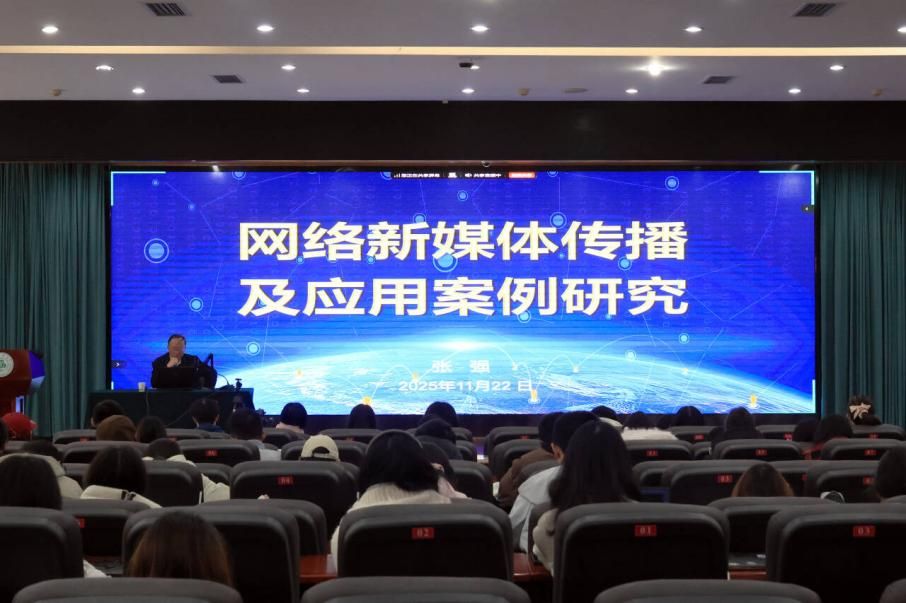 校党委副书记张强以《网络新媒体传播及应用案例研究》开讲,结合大量鲜活案例剖析网络传播新规律与新挑战,强调优质内容需贴近民生、传递正向情绪价值,以引发读者共鸣实现有效传播。