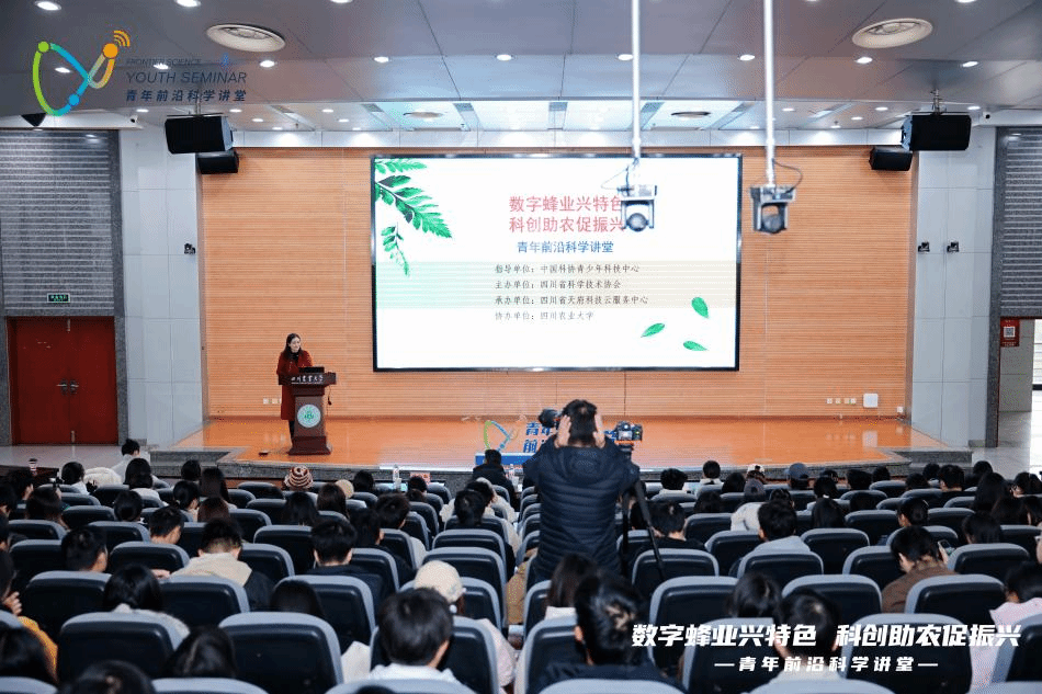 11月24日,由四川省科学技术协会主办、四川省天府科技云服务中心承办、四川农业大学协办的“数字蜂业兴特色 科创助农促振兴”青年前沿科学讲堂在我校成都校区二教报告厅顺利开展。本次讲座邀请天府万人计划入选者、四川省委新型智库专家、四川省学术和技术带头人后备人选张社梅教授进行分享。省科协创新发展部部长、天府科技云服务中心负责人杨博,学校科学技术协会副秘书长、科技管理处副处长张沙秋、学校团委副书记岳俊岐和400余名同学共同聆听蜜蜂产业促进乡村振兴的路径奥秘。