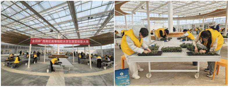 本次大赛设置“果树嫁接与修剪技能竞赛”与“蔬菜嫁接与种子识别技能竞赛(‘金田杯’大学生蔬菜技能竞赛)”两大赛道,每个赛道各高校均有9名选手(每3人1组、共3组)同台竞技。比赛除了选手操作技能的对决外,每个赛道还设有理论知识的比拼环节,全面考查学生的园艺学专业理论素养与实践操作能力。