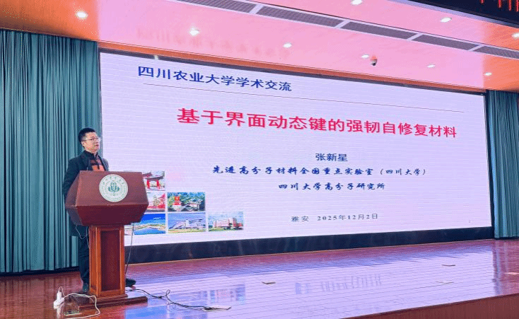 报告会上,张新星教授首先作了题为《基于界面动态键的强韧自修复材料》的报告,系统介绍了自修复材料的研究进展与应用前景。他详细阐释了界面动态键在材料自修复过程中的作用机制,指出动态化学在废弃塑料升级回收、工业应用等方面的巨大潜力。
