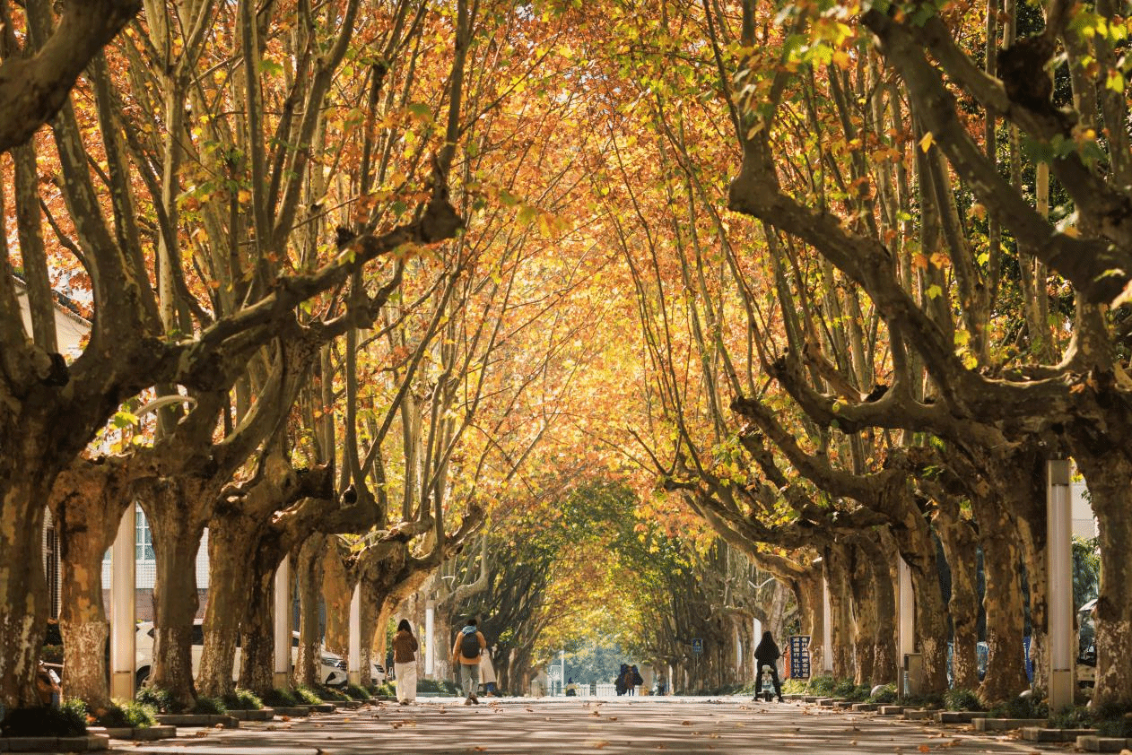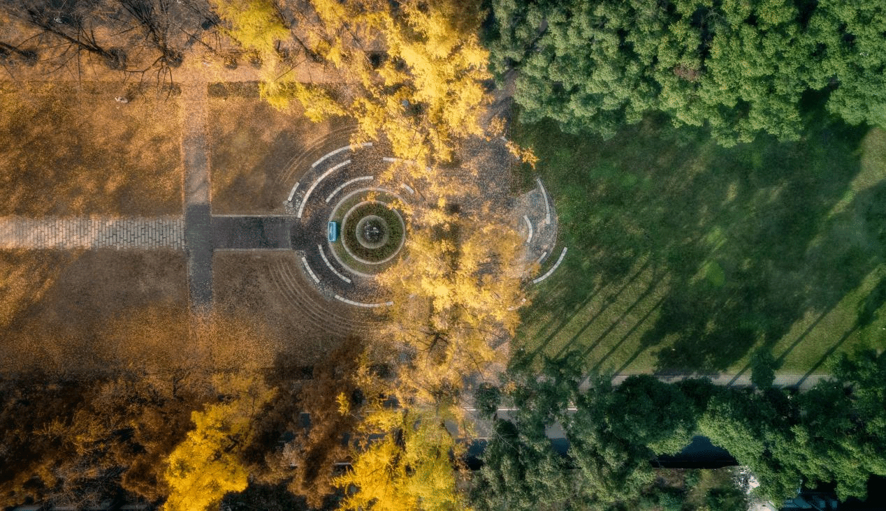 风起时,漫天的金色叶片如细雨般飘落,为每条小径覆上松软的地毯,校园便被点染成一处令人沉浸的诗意栖所。