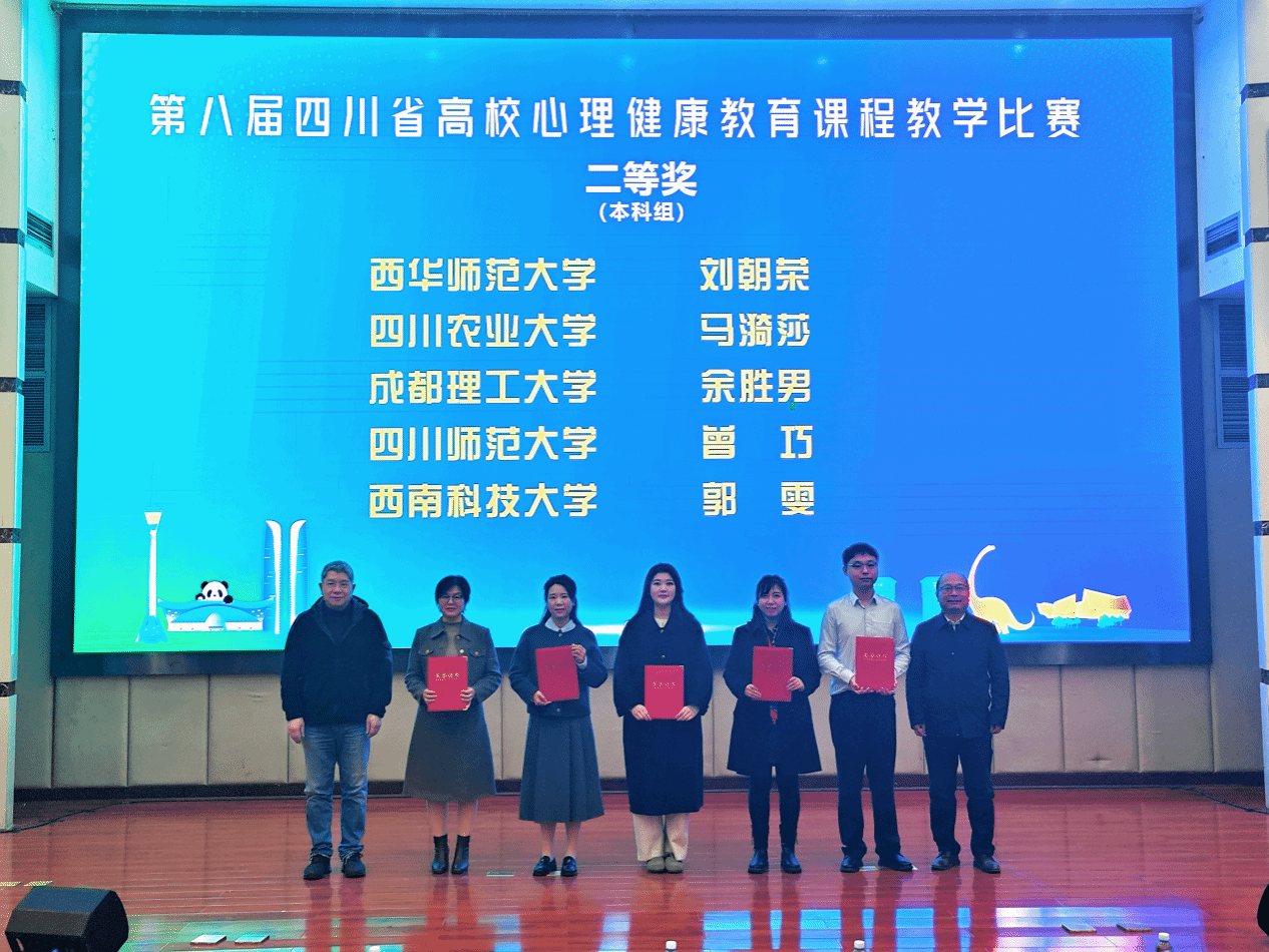 在年度先进评选与教学竞赛中,我校心理健康教育中心宋盼老师获评“2024-2025年度四川省普通高校心理健康教育先进工作者”;马漪莎老师在省级课程教学比赛中荣获二等奖,并在第六届全国高校心理健康课微视频比赛中同时斩获三等奖与最佳创意奖,充分展现了我校心理健康教育队伍的专业水平与创新活力。