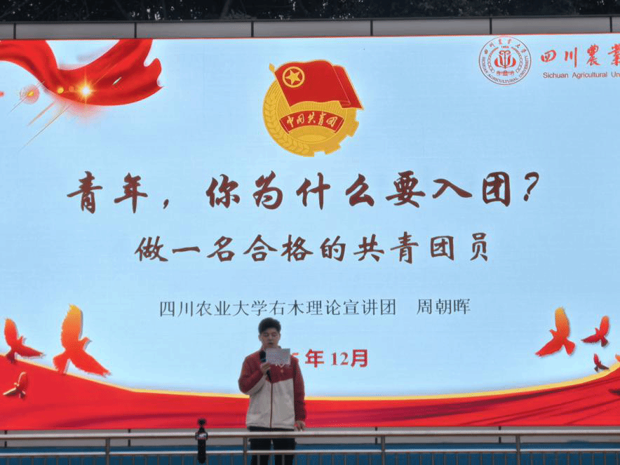 右木理论宣讲团骨干成员周朝晖同学特别为全体学生带来了一堂生动的主题团课《青年,你为什么要入团?如何做一名合格的共青团员》。团课紧扣时代要求与青年责任,结合共青团的光荣历史和团员先进事迹,深入浅出地阐述了合格共青团员应具备的思想觉悟、道德品质和实践能力,激励在场学子坚定理想信念,追求进步,积极向团组织靠拢,努力成长为担当民族复兴大任的时代新人。