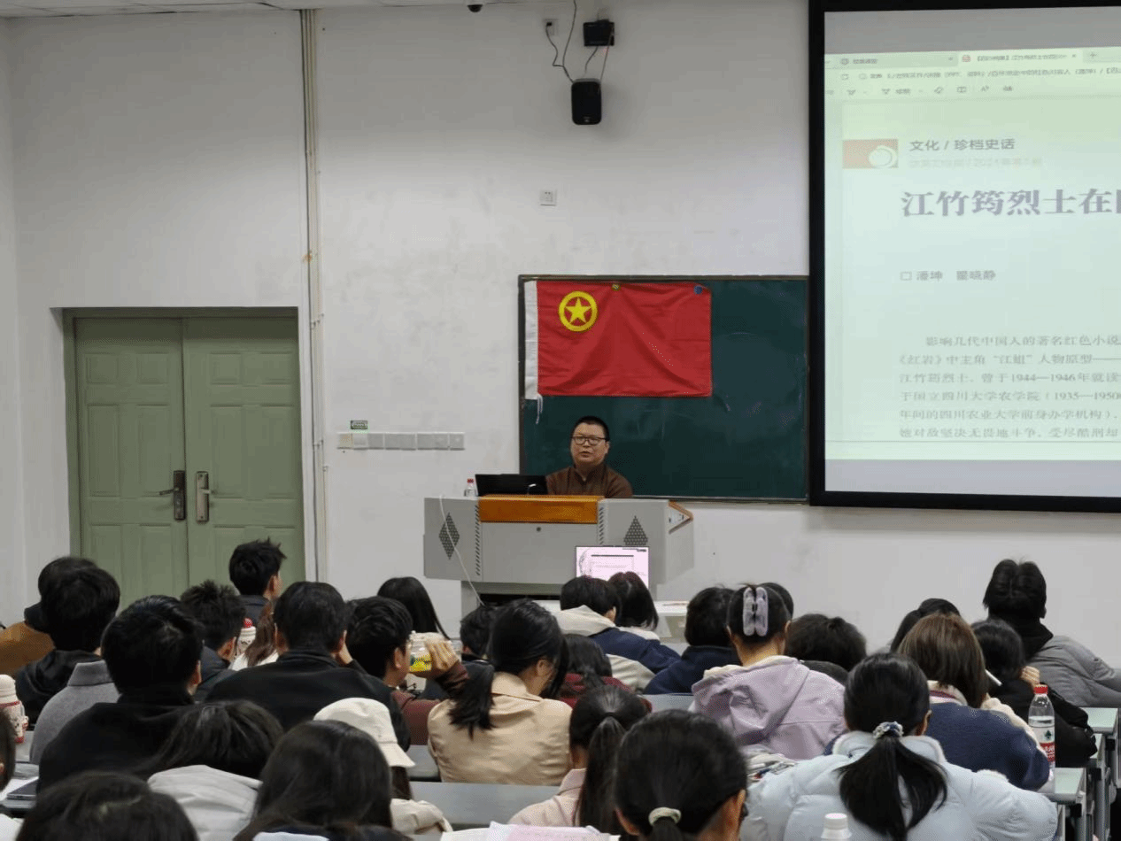 12月9日下午,校学生会联动学院学生会、新生班级开展“川农大红色校史”专题学习,邀请学校档案馆馆长潘坤教授主讲《“川农大精神”与校史文化》,三校区千余名新生团支书和班长、校院学生会骨干、艺术团骨干成员等参与学习,共同探寻川农大百年红色文脉中的精神密码,感悟川农大百廿校史的厚重底蕴。