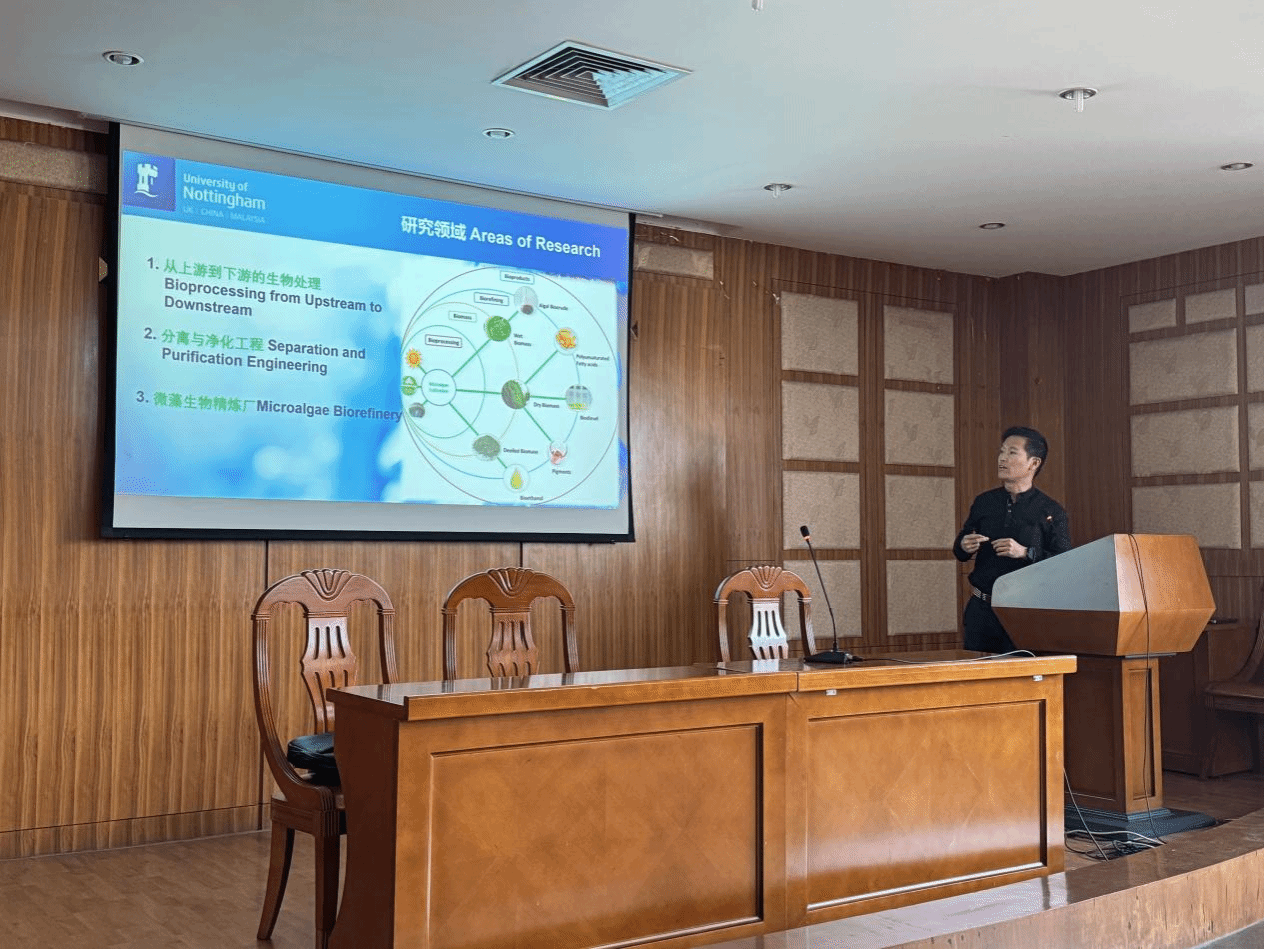 周柏乐则以《Research Progress in Microalgae Technology》(微藻技术研究进展)为题,重点介绍了液-液双相系统在微藻蛋白、脂质等生物精炼中的分离与纯化应用。该技术具有高效率、高选择性、易放大等特点,契合循环经济发展需求。他还探讨了物联网与人工智能在微藻生物精炼过程中的融合前景,同时指出相关技术推广中可能面临的挑战与伦理考量,呼吁开展负责任、包容性的科研与产业协作。