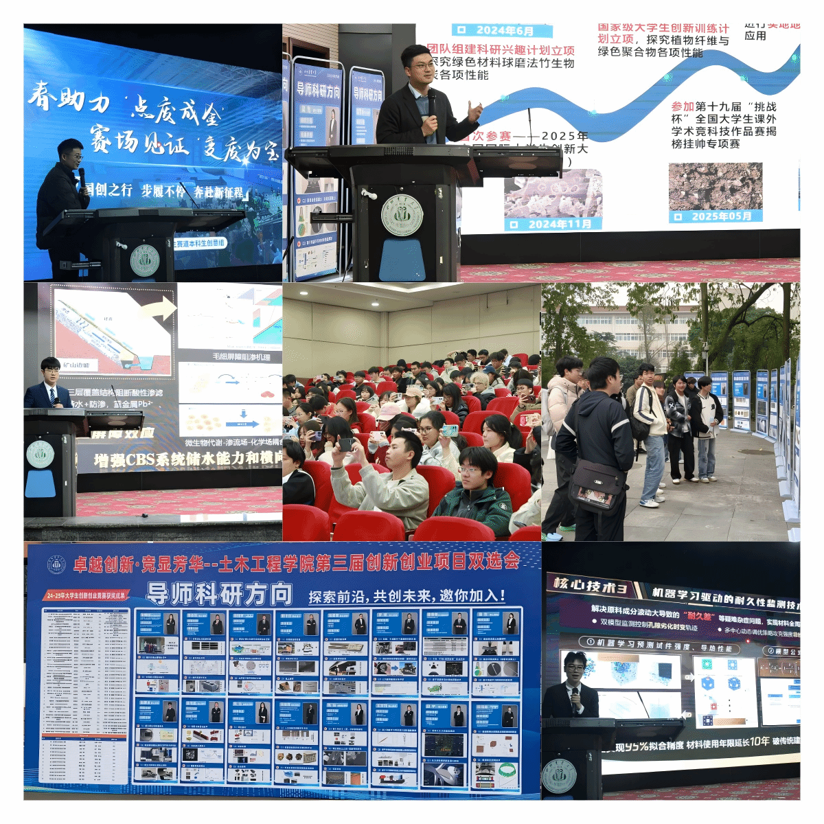 作为“三阶五环”体系的关键落地场景,年度双选会已成为学院师生共创的桥梁。本届双选会上,17支团队方向覆盖智能建造、绿色材料、智慧防灾等前沿领域,学生可根据兴趣与专长自主选择、直接对接。会上,获奖团队进行路演分享,指导教师现场解读课题,真正实现了“团队带项目、项目引学生、学生促创新”的良性互动。