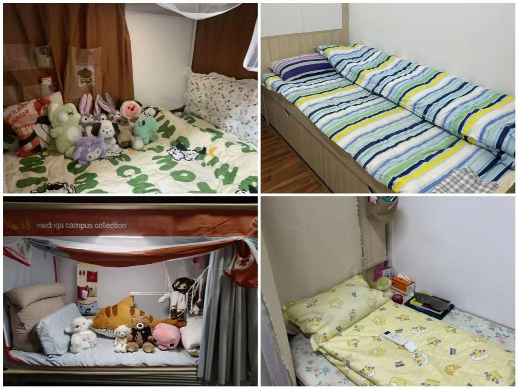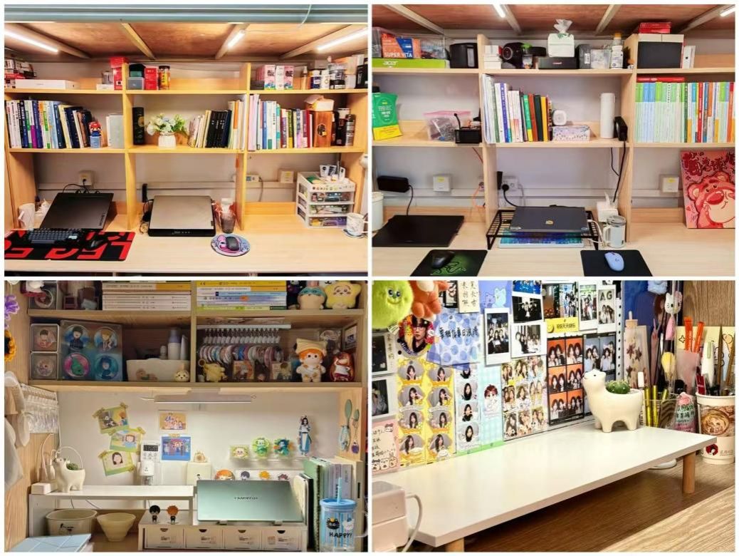走进这些参赛寝室,仿佛打开了一个个多彩的青春盲盒。雅安校区9-B506寝室以暖白灯光为引,将整齐的书架、洁净的阳台与默契的日常收纳融为一体,把普通的空间变成承载疲惫与欢笑的“暖居”;成都校区4-2-508寝室以融洽氛围、分享收纳妙招、共建学习风气,全方位展现了寝室生活的美好与活力;还有都江堰校区3-408寝室通过六张书桌无缝相连打造“核心岛”与“梦想长廊”,实现了空间、情感与学习的深度融合。