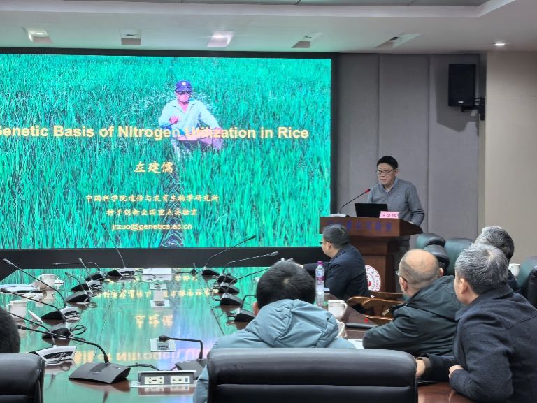 左建儒研究员以“水稻氮营养遗传基础初探”为题,分享了其带领的团队聚焦水稻生产中“高产晚熟”与“氮肥高效利用”的核心矛盾,通过筛选氮肥利用效率改变的遗传材料,鉴定出了调控该途径的关键调控因子的经历。这些关键调控因子在显著提高氮肥利用效率与籽粒产量的同时,不推迟甚至提前抽穗期。该发现为破解多熟制产区高产与农时紧迫的难题提供了新基因资源与育种策略,对保障粮食安全具有重要意义。