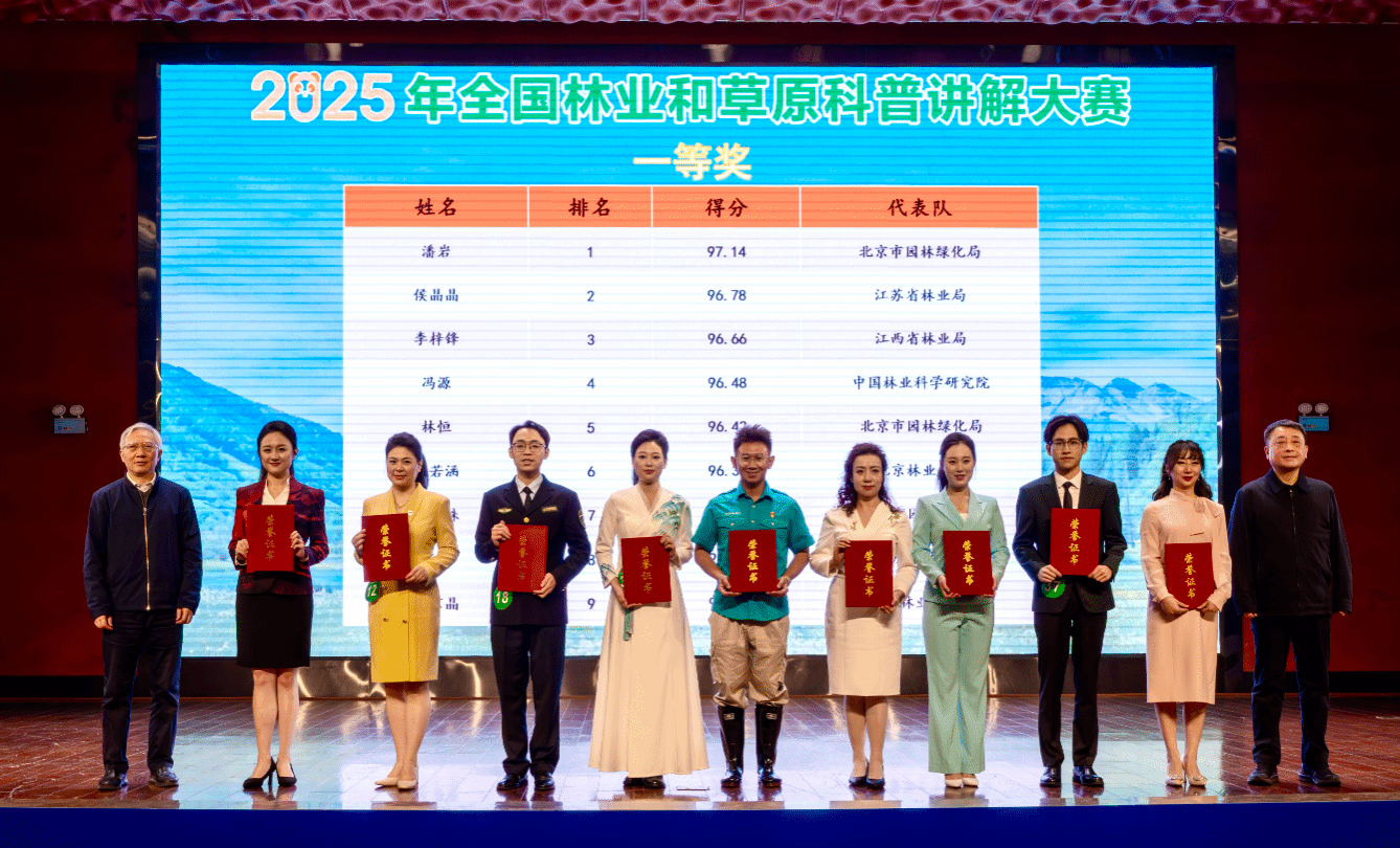 比赛中,选手们围绕国家公园建设、野生动植物保护、林草碳汇、生态修复、森林防火等议题,借助生动讲解、多媒体展示与实物演示等多种形式,使专业林草知识变得通俗易懂、触手可及。经激烈角逐,大赛评选出一等奖9名、二等奖14名、三等奖22名,并有13家单位获评优秀组织奖。