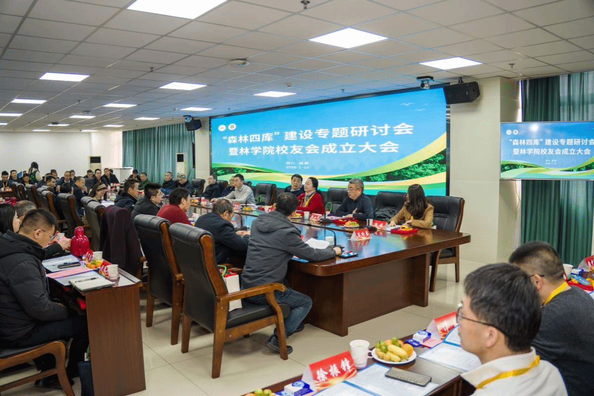 1月10日,林学院校友分会成立大会暨“森林四库”专题建设研讨会在成都校区举行。学校副校长方正锋,学工部部长、学生处处长、学校教育发展基金会理事长李静波,77级林学系校友、原四川省林业厅厅长杨冬生,原雅安市人大常委会副主任罗承德,四川省林业和草原调查规划党委书记院长陈小中,四川省林业科学研究院党委书记郭洪英、四川省林业勘察设计研究院有限公司董事长袁晖、四川林业集团有限公司副总经理曾凡明等来自全国各地的70余名校友代表齐聚一堂。大会由林学院党委书记胡迅主持。