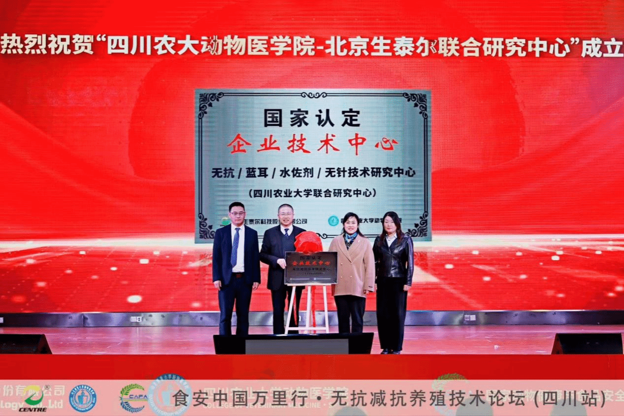论坛期间,一项重要成果正式落地——由我校动物医学院、北京生泰尔公司联合华中农业大学、中国水产科学研究院长江水产研究所等十余家单位共建的“无抗减抗技术联合研究中心”正式揭牌。这是我校动物医学院服务国家食品安全战略、引领产业可持续发展的一项关键举措。