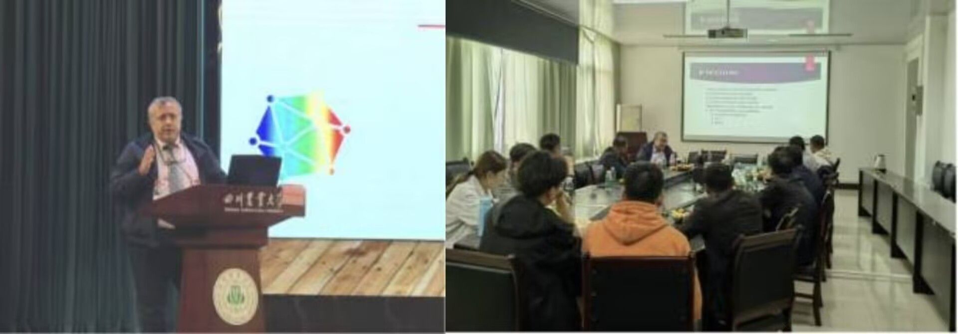 左为Ferruh Erdogdu教授在我校国际化办学推进大会上做特邀报告 右为Ferruh Erdogdu教授为食品学院师生做学术报告