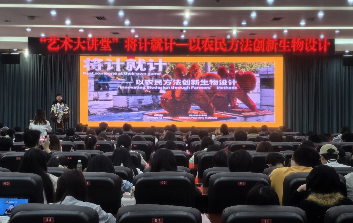 在四川农业大学喜迎120周年华诞之际,为深化美育与设计教育交叉融合、探索“艺术+科技+乡村”的创新路径,4月10日下午,艺术与传媒学院“艺术大讲堂”专题讲座在雅安校区十教一楼学术报告厅举行。活动特邀四川美术学院副校长、博士生导师段胜峰教授作题为《将计就计——以农民方法创新生物设计》的学术讲座。学院近200名师生到场聆听,现场座无虚席。