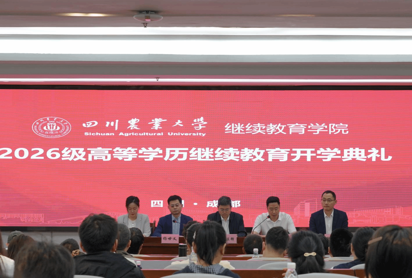 4月18日,我校2026级高等学历继续教育开学典礼隆重举行。典礼采用校本部主会场、校外教学点分会场同步联动、“川农在线”腾讯视频号全程直播的形式开展。学校副校长方正锋、继续教育学院全体领导班子出席典礼。来自全国12个省(自治区、直辖市)、20余个教学点的11275名新同学参加典礼,共赴新程。典礼由继续教育学院党总支书记杨世义主持。