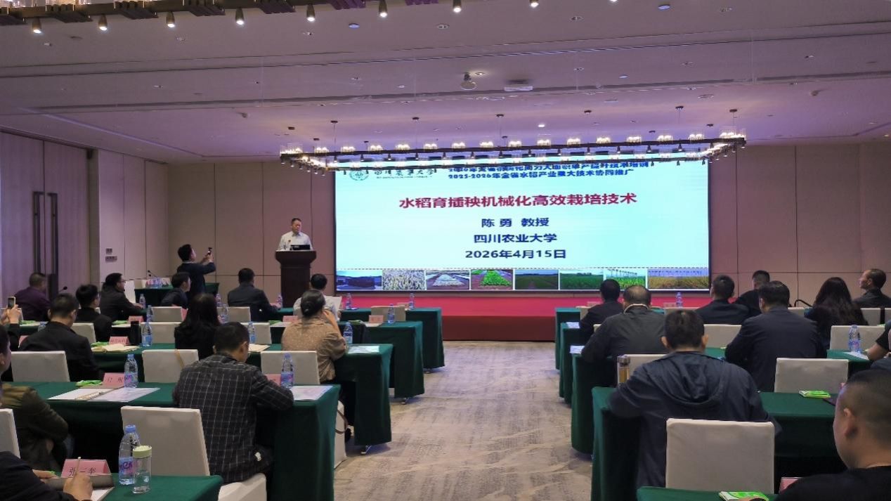 集中培训会上,农学院陈勇教授作了题为《水稻育插秧机械化高效栽培技术》的报告。针对我省水稻机械化发展区域不平衡、育播栽环节机械化水平偏低等问题,他重点介绍了宜机化品种选配、齐苗壮根绿色低碳机械化育秧、减穴稳苗机插秧、水肥高效管理等关键技术,以及配套的农机装备,为促进水稻大面积单产提升提供技术支撑。