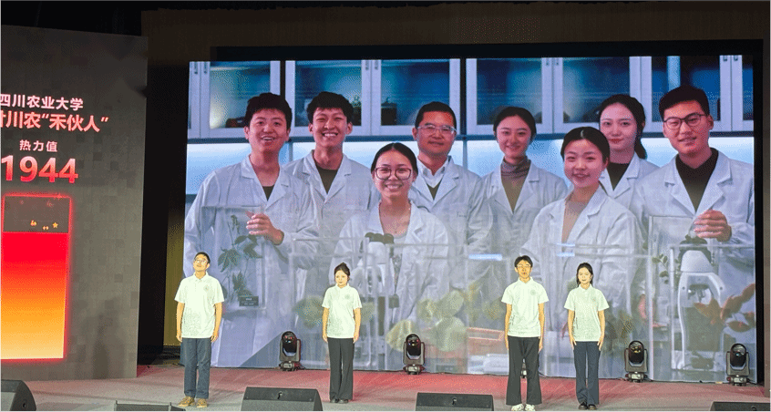 本次展演以“一粒稻米”为引,贯穿川农大百廿年来的粮食报国之路。从战火中杨开渠拓荒育种的“救命粮”,到奋进年代周开达科研攻坚的“高产稻”;从新时代多位科研前辈深耕分子育种的“绿色粮”,到青马学子接续奋斗、扎根田野的“复兴种”,宣讲以青年视角、青年语言,生动再现了一代代川农人在党的引领下,以稻为脉、以农为本,筑牢大国粮安的初心使命。“我们以青春为种,以信仰为壤,扎根天府沃土,践行使命担当。”展演最后,青马学员们以合诵形式发出青春誓言,表达将个人理想融入国家粮食安全战略、以青春之力服务乡村振兴的坚定信念。
