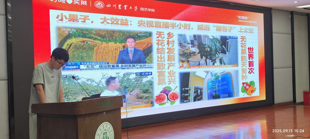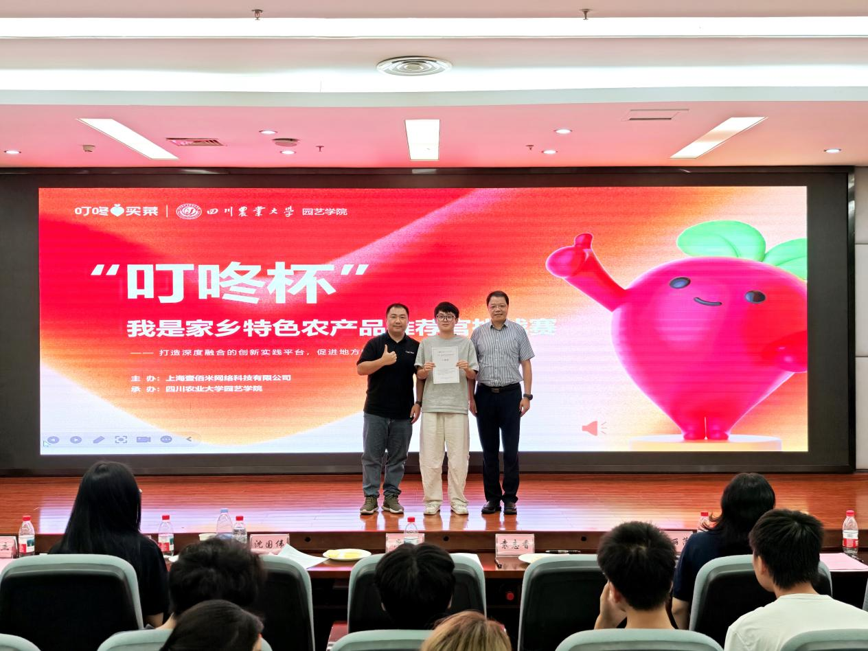 为深化校企合作育人,四川农业大学园艺学院联合上海壹佰米网络科技有限公司(叮咚买菜)联合举办了首届“叮咚杯”我是家乡特色农产品推荐官挑战赛。大赛分为初赛、复赛和决赛三个阶段。日前,此次比赛的决赛在成都校区图书馆报告厅举行,200余名园艺学院2025级新生现场观摩比赛。