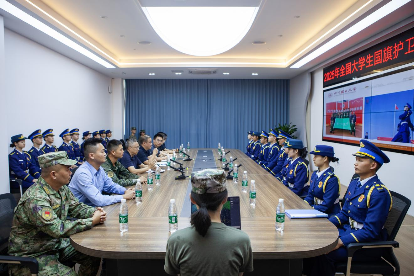 9月17日,学校武装部在成都校区举行了2025年中国大学生国旗护卫队展示赛出征仪式暨誓师大会。武装部、学生处、团委等部门负责人、教练员、带队教师及参赛队员参会。仪式由保卫处副处长何云主持。
