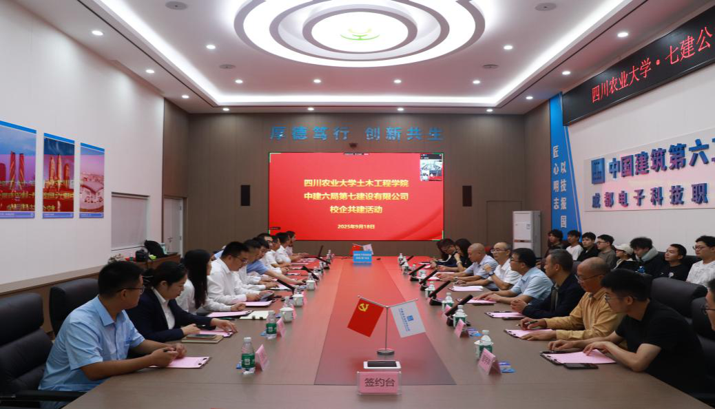 为深入贯彻落实产教融合、校企协同育人理念,进一步拓宽就业渠道、深化科研合作,9 月 18 日,土木工程学院院长邹祖银,党委书记何仁辉,党委副书记、纪委书记赵中国、副院长郭子红带队系主任、就业秘书和14名2022级学生前往中建六局第七建设有限公司(以下简称 “七建公司”)开展访企拓岗活动。双方签署校企合作协议,共同为“产学研教育实训基地”“人才培养基地”揭牌,标志着学院与七建公司的合作迈入实质性、系统化新阶段。