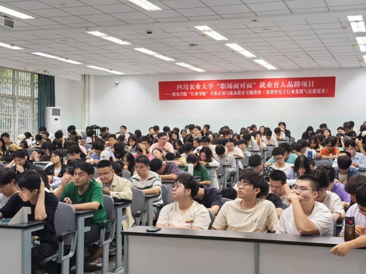 9月18日下午,四川农业大学“职场面对面”就业育人品牌项目 —— 机电学院“行业导航”专业认知与就业规划专题讲座在十教举行。本次讲座特邀广东领益智造股份有限公司人力资源部技术发展总监郜晋峰担任主讲人,围绕“消费性电子行业发展与技能要求”主题,为在场师生带来兼具行业深度与实践指导意义的分享。