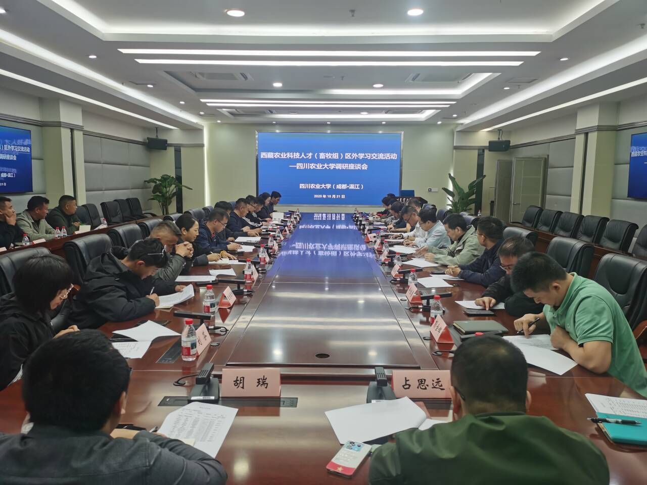 10月21日,西藏自治区农业农村厅组织全区17位畜牧科技人才赴四川农业大学开展学习参访和交流活动。我校乡村振兴学院、动物科技学院、动物医学院和动物营养研究所共14位教师代表参加交流座谈。会议由乡村振兴学院副院长胡剑锋主持。