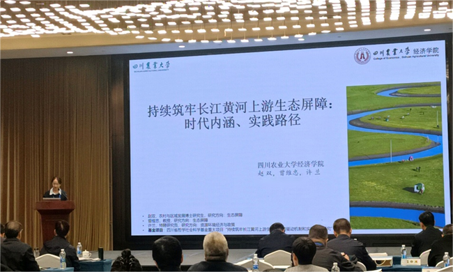 在“黄河文化传承与发展”分会场,许兰作了题为《持续筑牢长江黄河上游生态屏障:时代内涵、实践路径》的学术报告。该报告为学院曾维忠教授主持的四川省哲学社会科学基金重大项目“持续筑牢长江黄河上游生态屏障的驱动机制和实现路径研究”的阶段性成果。报告以前瞻视野和扎实研究,系统阐释了新时代筑牢长江黄河上游生态“双屏障”的时代内涵与实践方向,为推进相关领域理论创新与实践探索提供了有益参考,引发与会专家的热烈讨论与积极反响。
