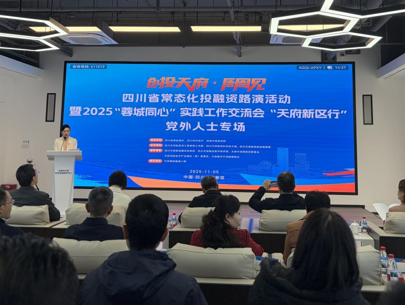 本次活动由四川天府新区党工委党群工作部、四川天府新区科技局、四川天府新区财政国资局等单位联合主办,聚焦“立园满园攻坚年”工作主题,依托“周周有路演、场场有成效”的四川省常态化投融资路演机制,推动全市党外资源与天府新区产业园区深度融合。会上,天府新区相关单位对新区产业布局、发展优势和配套政策进行宣传推介。在随后的项目路演环节,7家高新技术企业围绕生物科技、新材料、环保设备等领域进行展示,并与投融资机构、专家学者深度对接。最后,天府新区党工委党群工作部发布了《“蓉城同心・聚力天府”统一战线资源常态化对接交流机制》。该机制的发布构建了一个高效、务实、开放的合作平台,推动人才、技术、资本、信息、项目等要素在新区充分涌流、高效配置,将统一战线的智力和资源优势转化为推动新区高质量发展的现实动能。