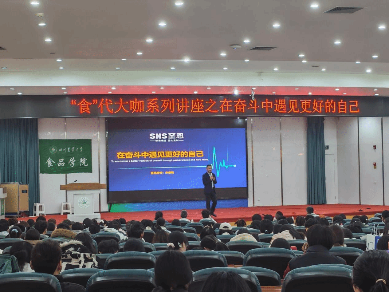 为帮助食品学子明晰职业方向、汲取奋斗力量,食品学院特邀成都圣恩生物科技股份有限公司创始人、董事长朱俊松,于11月18日下午在第十教学楼二楼小礼堂开展以“在奋斗中遇见更好的自己”为主题的“食”代大咖进校园系列讲座。圣恩股份财务总监廖福前、技术总工宋小焱,食品学院党委书记何勇、副书记书记汤瑞瑞、党委办公室负责人参与讲座,讲座由何勇主持。