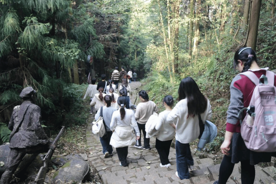 活动最后一环是“重走长征路”实践体验。师生党员沿着蜿蜒山道,踏寻革命先辈足迹。虽路途崎岖,但没有人掉队。在徒步跋涉中,大家以身体感知历史,用脚步丈量信仰,在汗水与交流中深化对长征精神时代内涵的理解。