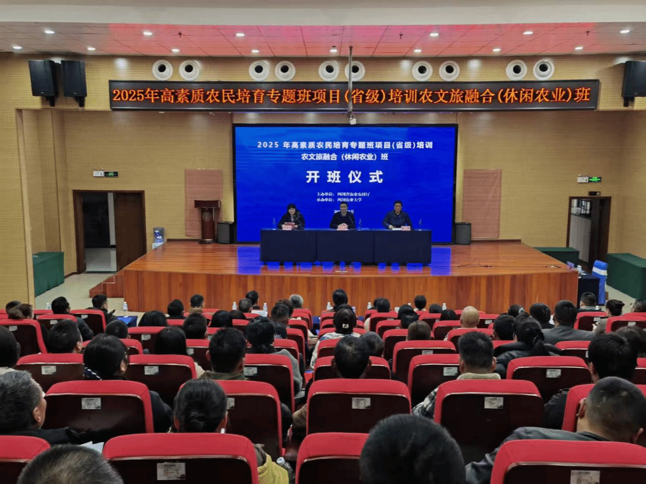 为深入贯彻国家乡村振兴战略,扎实推进农业农村现代化,发挥高校在人才培养、科技支撑与社会服务中的引领作用,12月8日上午,由继续教育学院承办的2025年高素质农民培育专题班项目(省级)——“农文旅融合(休闲农业)班”在雅安校区正式启动。我校继续教育学院相关部门负责人、项目教学管理团队及来自全省各地近150名学员共同参加了开班仪式。