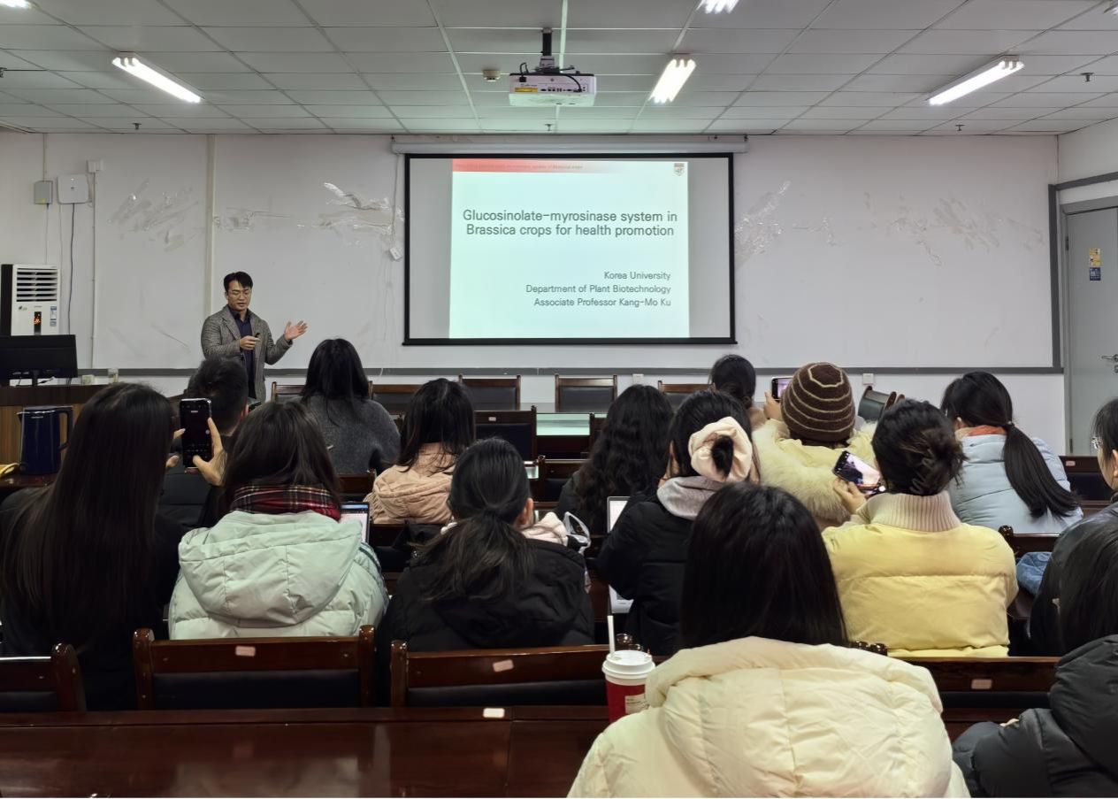 日前,韩国高丽大学植物生物工学系副教授具康謨(Kang-Mo Ku)博士应园艺学院邀请,在“园艺博学讲坛”做了题为《Glucosinolate-Myrosinase System in Brassica Crops for Health Promotion(芸薹属作物中芥子油苷-黑芥子酶系统的健康促进作用)》的学术报告。报告会由园艺学院副院长孙勃教授主持,学院青年教师、研究生及本科生参加本次交流活动。报告中,具康謨博士系统阐释了十字花科作物中关键功能成分——芥子油苷及其代谢系统的生理作用与健康价值,并分享了其团队通过代谢育种与外源调控手段提升蔬菜保健功能的研究进展,为我院师生未来科研工作带来了更多的思路和启示。之后,参会师生结合自身研究领域,与具康謨博士展开热烈的交流与讨论。
